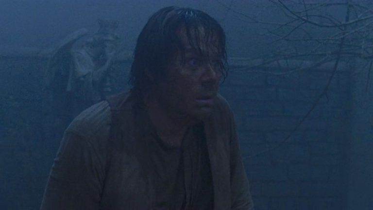 Quien que no haya leído los cómics no sabe qué están haciendo los zombies, pero, siente el miedo. El título del episodio es más inquietante aún: evolución. El momento en el que Eugene comparte su teoría sobre la evolución de los muertos funciona de forma extraña, es un pensamiento lógico para un tipo que lo analiza todo y que ha tenido tiempo para pensar mientras se ocultaba en un cajón y escuchaba a la horda buscándolo. La trama del rescate a Eugene mantiene una atmósfera terrorífica muy acertada. Vemos a tres hombres y perro acercándose a un granero, es de noche, está oscuro y escuchamos el sonido del viento y una lejana tormenta… Es bellísimo, es lo más clásico del terror llevado de forma perfecta.  Llevo mucho tiempo pensando que puesto que estamos viendo una serie de zombies, sería maravilloso que explotasen alguna linea argumental en el género de terror. Y cuando, por fin lo han hecho, ha quedado tan bien que quiero repetir cuanto antes.