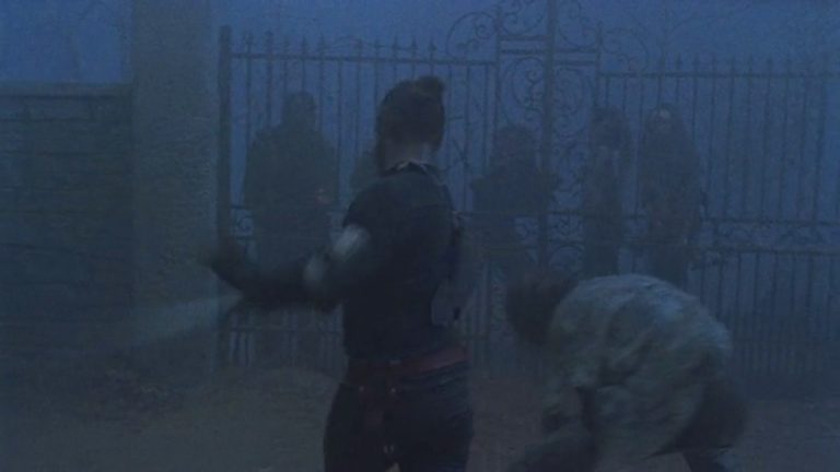 La mayor parte de la acción se desarrolla de noche, en una oscura noche donde el sonido del viento se hace protagonista. Después se oyen algunos truenos y para rematar tenemos niebla. Los personajes terminan en un cementerio de estética victoriana mientras la niebla los turba y oculta a los enemigos. Esa última escena es simplemente perfecta. En un clima de lo más siniestro los personajes huyen de los zombies y luchan contra una verja imposible de abrir. La escena era lo suficientemente brillante como para tener al espectador mirando atentamente la pantalla, pero añadimos una coreografía de lucha excelente. El personaje experto en artes marciales destaca entre la niebla masacrando a los enemigos.  Está bien dirigido y es visualmente genial y de repente, llega ese instante en el que un walker anónimo y en principio indefenso ante Jesus, se agacha, esquiva y en un movimiento ágil lo engancha por detrás y lo apuñala mientras le susurra al oído: You are where you don’t belong. Es la cosa más brillantes que he visto en la temporada.